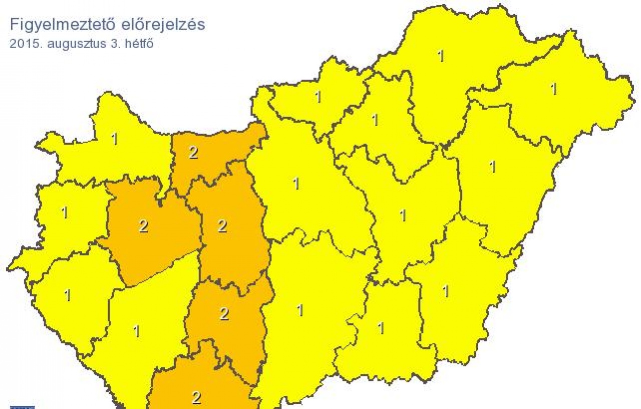 Átmeneti szünet után jellemzően déltől, kora délutántól ismét egyre több helyen kialakulhat eső. A zivatarokat helyenként felhőszakadás (ált. 25-45, néhol > 50 mm), szélerősödés (50-75 km/h) és jégeső (jellemzően 2 cm alatti átmérővel) kísérheti. Egy-egy heves zivatar sem kizárt jégesővel (2 cm körüli, esetleg feletti átmérővel) és 80 km/h feletti széllökéssel.
