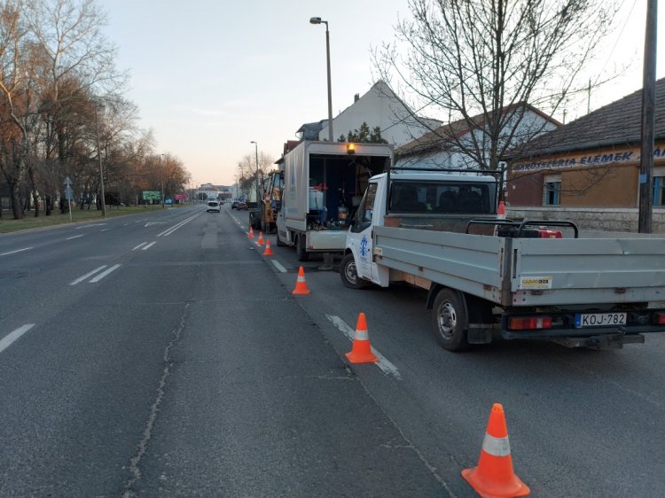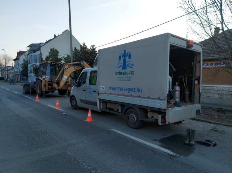 Helyreállítottak egy eltört ivóvízcsövet a Nyírségvíz szakemberei a Hunyadi utcán