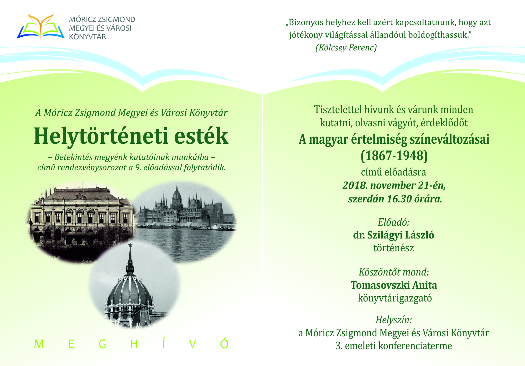 Helytörténeti esték - A magyar értelmiség színeváltozásai (1867-1948)