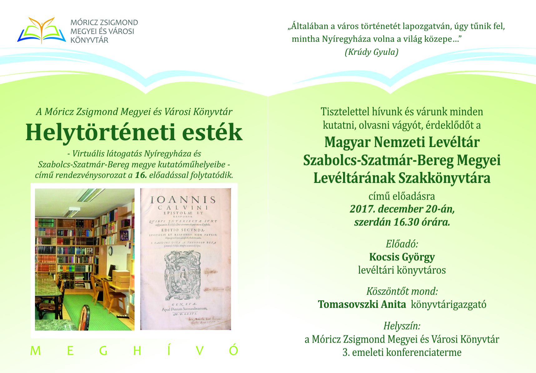 Helytörténeti esték - Megyei Levéltár Szakkönyvtára