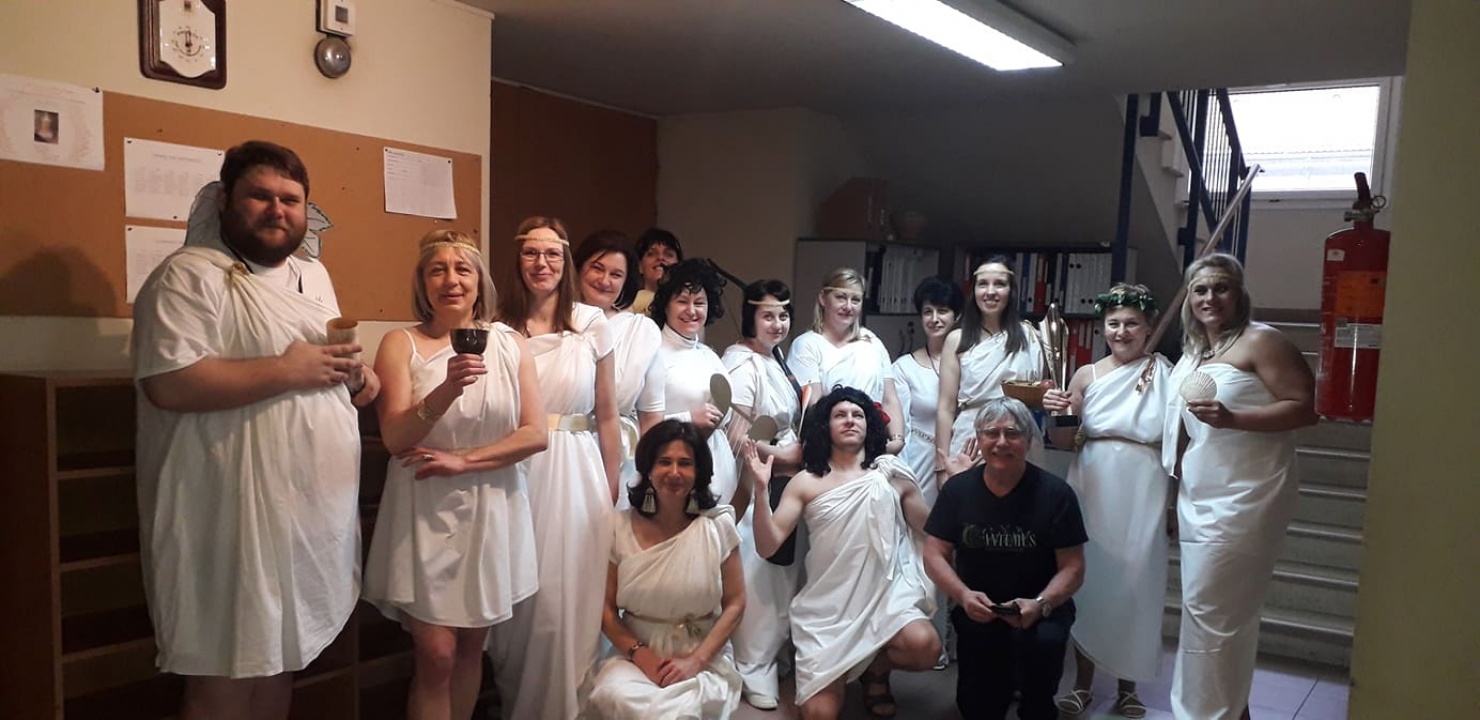 Pár perccel később Poszeidon és Artemisz is követte, a diákok hatalmas meglepetésére. Nem, nem időutazás részesei voltak a tanulók, pénteken tartják a farsangot az intézményben, és a gyerekek mellett a tanári kar tagjai is beöltöztek - görög isteneknek. Különleges nap ez az intézmény életében, számos program várja a tanulókat, délután pedig a felsős diákok adnak elő táncos produkciókat. És ahogy látszik, a tanári kar is mindenre kapható...