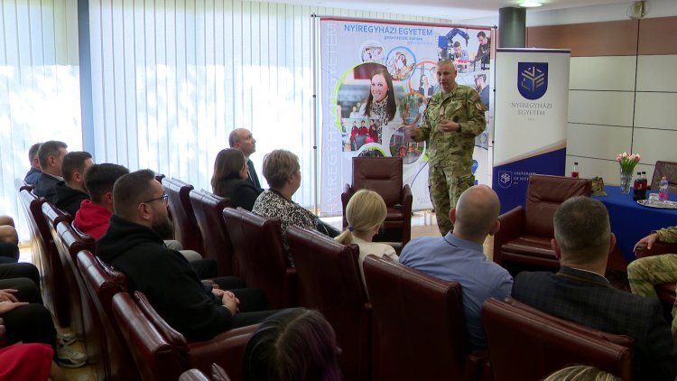 A Honvédelmi és Haderőfejlesztési Program szükségességéről, a Magyar Honvédség feladatairól, NATO-kötelezettségekről és az orosz–ukrán háborúról tartott előadást egy kerekasztal-beszélgetésen dr. Ruszin-Szendi Romulusz altábornagy, a Magyar Honvédség parancsnoka kedden, a Nyíregyházi Egyetemen.