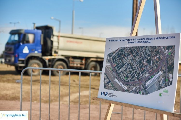 Lerakták az alapkövet, kezdődik a munka – indul a nagykörút hiányzó szakaszának megépítése. A mintegy 1,2 kilométer hosszú, 2x2 sávos út megépítésére húsz évet vártak a nyíregyháziak, a kormány támogatásával most végre lezárulhat a körút. A tervek szerint 2024 első negyedévére készül el a beruházás.