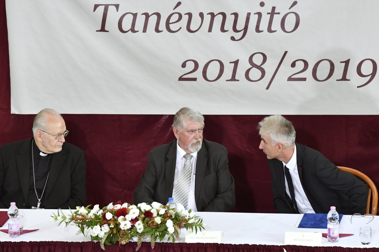 Erdő Péter bíboros azt mondta: komoly jelentősége van annak, hogy az új tanév egy egyházi iskolában indul. Arra emlékeztett, hogy a rendszerváltás előtt kivették az egyház kezéből az oktatást. Mára viszont kiegészítik egymást az állami intézményekkel.