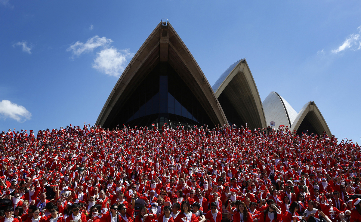 A szánt általában rénszarvas húzza, de nem Ausztráliában! Itt nyolc fehér kenguru áll a szán előtt! Mivel itt ilyenkor nyár van, a kertben fogyasztják el a vacsorát az itt élők, majd fürdenek egyet a tengerben…