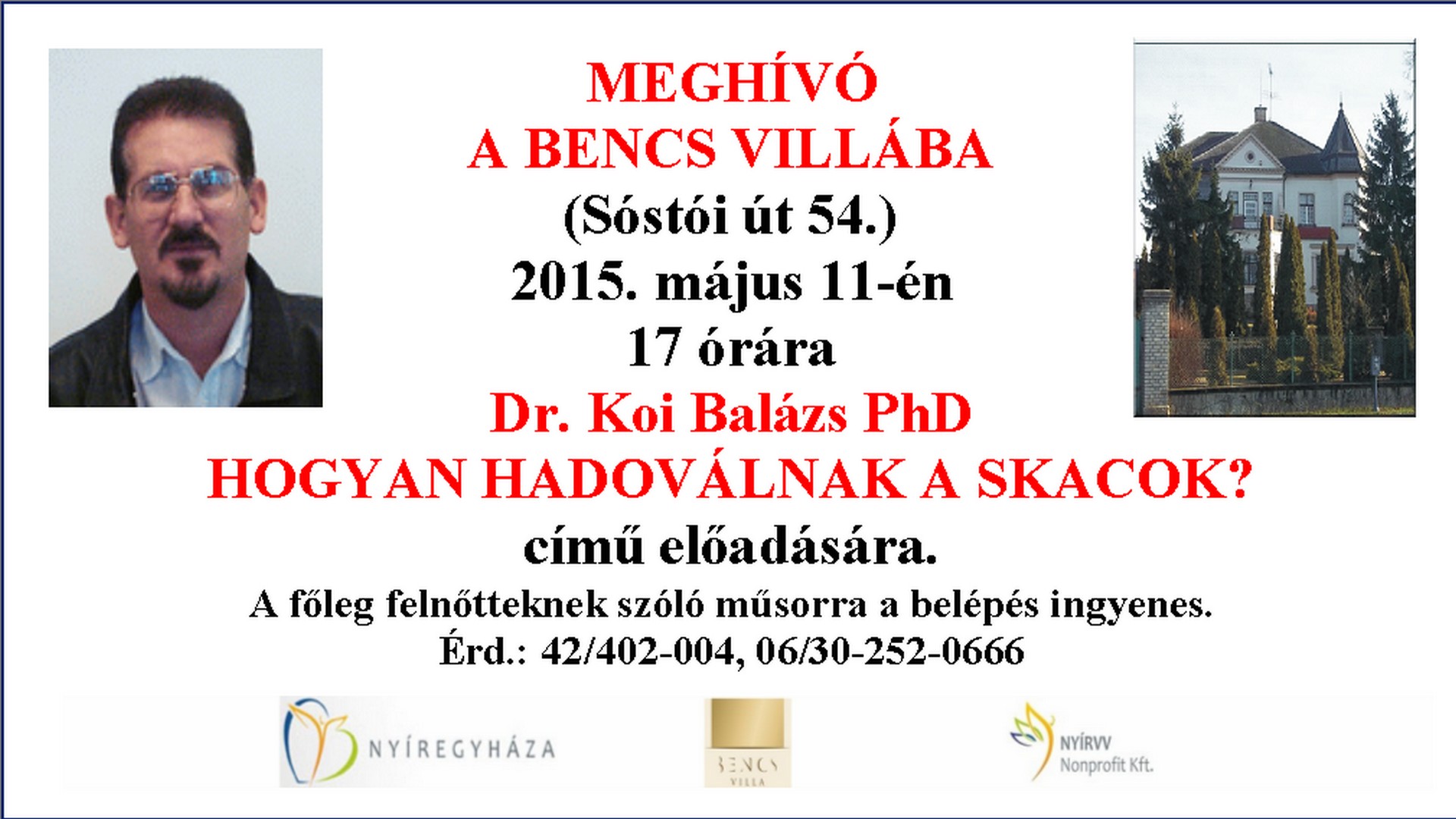 Dr. Koi Balázs előadására várják a városlakókat május 11-én a Bencs Villában.