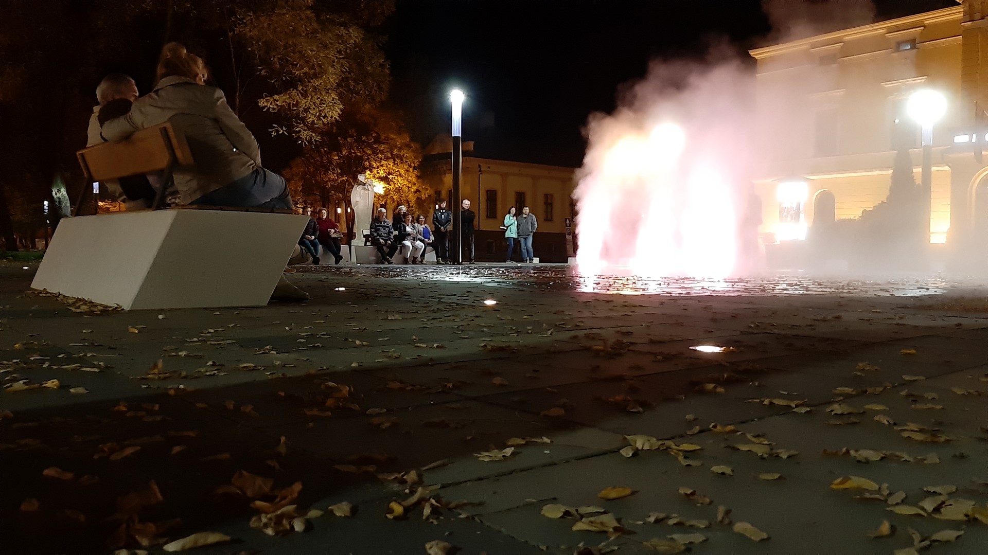 Ha eddig nem sikerült volna kitalálni, elárulom. A nemrégiben átadott Bessenyei téren. Sötétedés után szétnézve jó volt látni, ahogy a nyíregyházi emberek sétáltak vagy a padon ülve, gyönyörködve Nyíregyháza új szökőkútjában, beszélgettek.