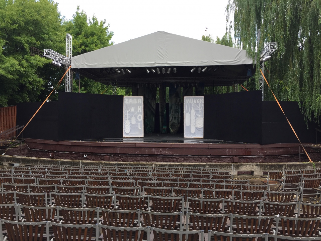 Kírják Róbert azonban megnyugtatott bennünket, minden rendben van, a díszletek jól állták a hirtelen érkező vihart és semmi sem zavarhatja az esti előadást. Az igazgató azt is elárulta, hogy folyamatosan figyelik az időjárás előrejelzéseket, estére tökéletes időt jósolnak. Így duplán is holdvilágos éjszakát ígérhet a színházbarátoknak, hiszen a ma esti nyítóelőadáson Koltai Róbert rendezésében és főszereplésével egy igazi Eisemann klasszikus, az Én és a kisöcsém kerül színre. Tehát nyugodtan készülődhetnek az estére azok, akik már megváltották a jegyüket. Akik pedig kivártak a mai napig, azok siessenek a jegyirodába, hiszen jegyek még korlátozott számban kaphatóak...