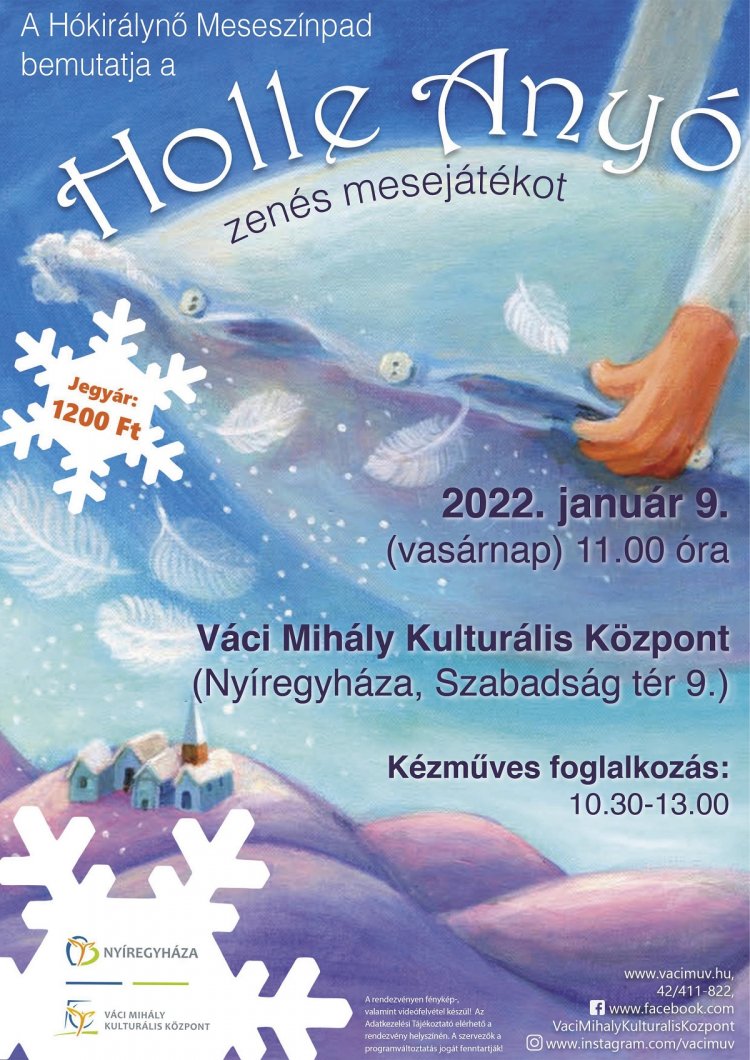 A Hókirálynő Meseszínpad előadása és kézműves foglalkozás várja a családokat 2022. január 9-én a Váci Mihály Kulturális Központban.