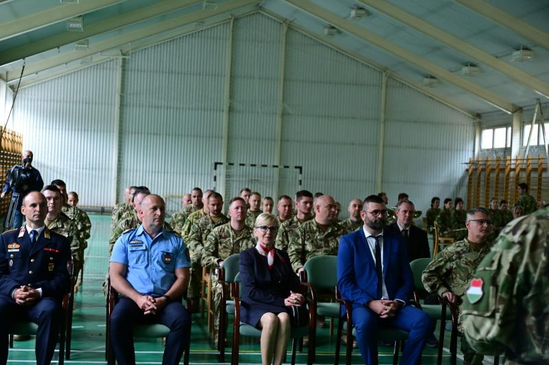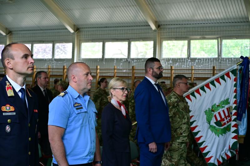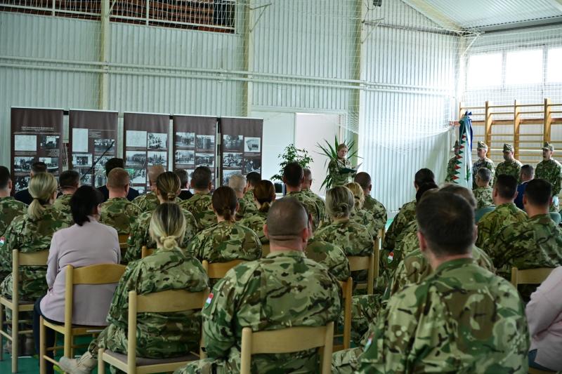 Az ezredparancsnok ünnepi beszédében kiemelte, a Honvédelem Napja és a Hősök Emléknapja alkalmat ad arra, hogy elismeréssel tisztelegjenek azon civilek előtt, akik szükség esetén egyenruhát öltve állnak helyt a hazáért, valamint azon katonák előtt is, akik például a migrációs válság idején vagy a 2024-es dunai árvíz során tanúsítottak példamutató helytállást.