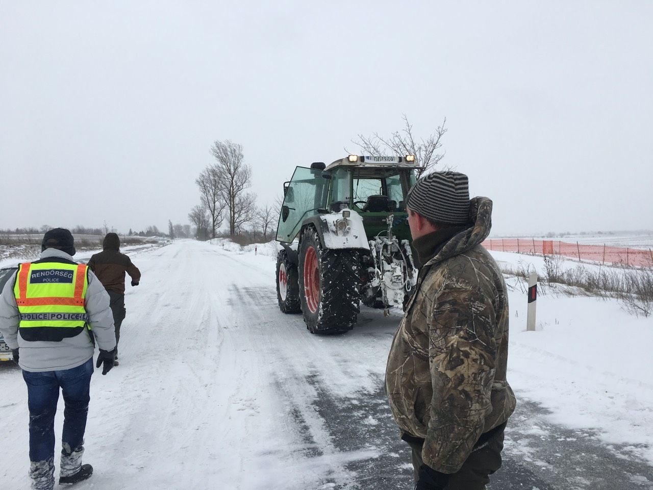 Virányos közelében, a 38-as főúton voltak, akik a hófogságában rekedtek, de több közlekedő is a segítségükre sietett.