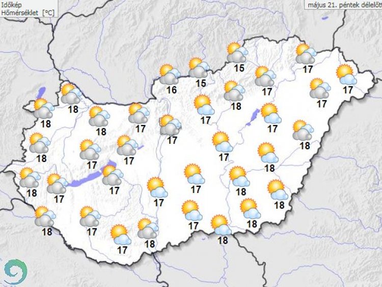 A legmagasabb nappali hőmérséklet 19 és 24 fok között alakul. Késő estére 13, 18 fokra hűl le a levegő.