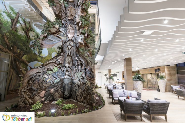 Ugyanakkor azonban látványos attrakciónak ad helyet a látogatók számára is, mert egy hatalmas életfa plasztika magasodik fel a közepén, az évszakok allegorikus figurái mellett, számtalan állattal és növényi ornamentikával benépesítve ágait.