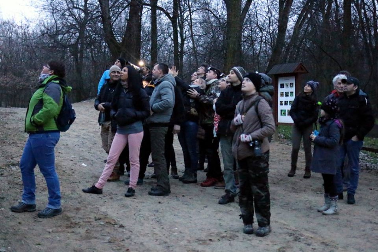 Az első megállónk a Hármasdombnál volt, ahol az első hangozáskor meg is jelent egy macskabagoly – mindannyiunk nagy örömére. Izgatottan figyelte a társaság az egészen közel elreppenő madarat, a szerencsések fényképezőgépükkel meg is örökítették a pillanatot. Ezután elindult a hosszabb túra a Tölgyes utcáig, ahol már kevesebb sikerrel járt a csapatunk. A harmadik állomásnál szintén megfigyeltünk egy egyedet, azonban utána nem örvendeztettek meg minket szárnyas barátaink.