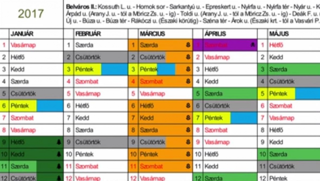 Az idei évre vonatkozó hulladékszállítási járatrendet tartalmazza az új hulladékszállítási naptár, amit folyamatosan juttatnak el a lakosokhoz a Térségi Hulladék-Gazdálkodási Nonprofit Kft. munkatársai. Ebben megtalálható az, hogy az adott városrészben mely napokon szállítják el a kommunális-, a bio- és a szelektíven összegyűjtött hulladékot. De tartalmazza a naptár az egyéb nevezetes időpontokat és akciókat, valamint útmutatást ad ahhoz is, hogyan kell a háztartásokban keletkezett hulladékot szakszerűen gyűjteni.