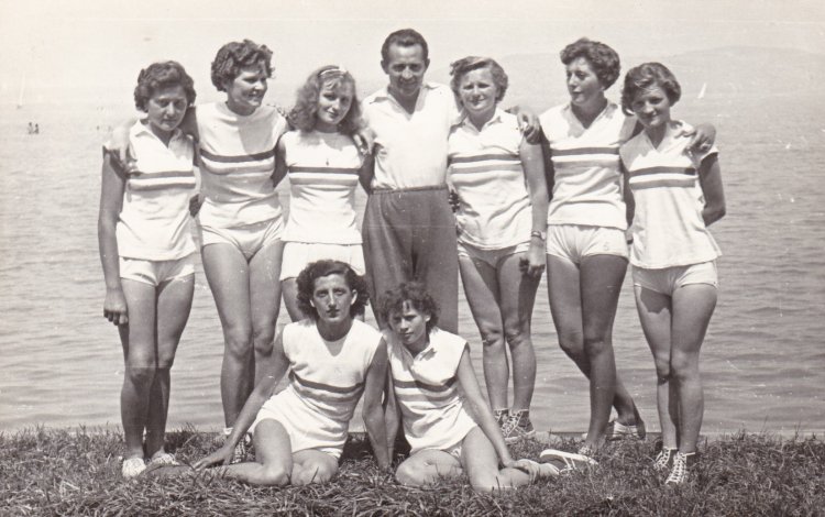 A Nyíregyházi Traktor SK röplabdacsapata az 1956-os szpartakiádon Balatonbogláron FOTÓ: MARIK SÁNDOR ARCHÍVUMA