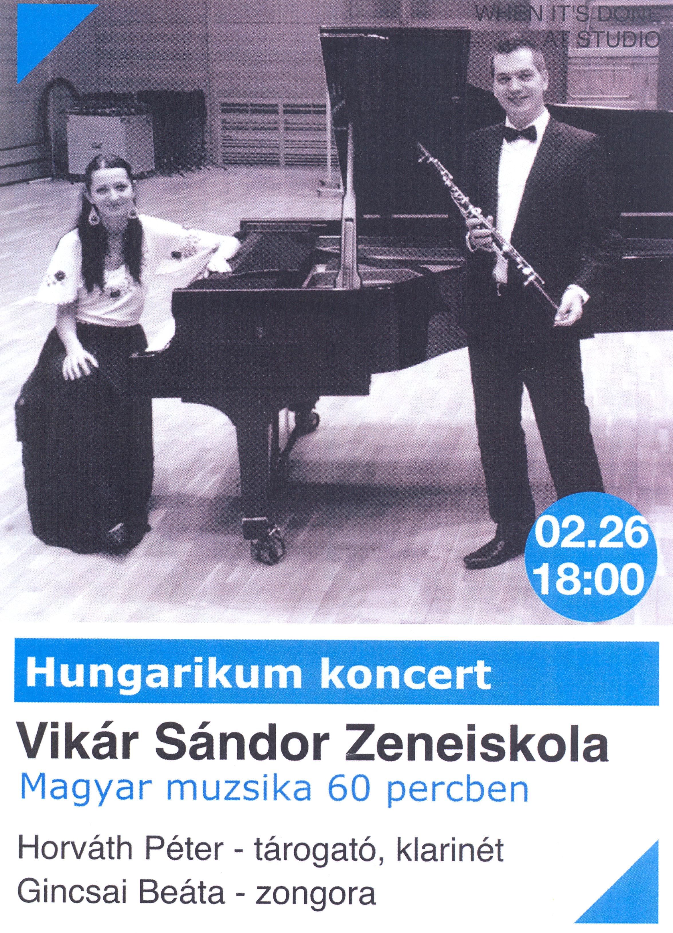 Gincsai Beáta (zongora) a Vikár Sándor Zenei Alapfokú Művészeti Iskola volt növendéke és férje, Horváth Péter (klarinét) Fischer Annie-ösztöndíjas koncertjére várják a zenebarátokat.