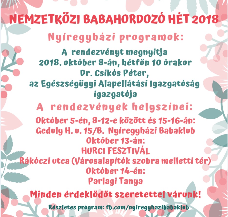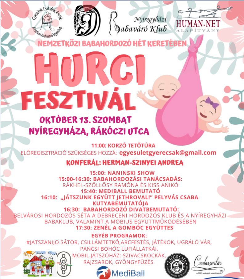 A Nemzetközi Babahordozó Hét keretében megrendezik a Hurci Fesztivált.