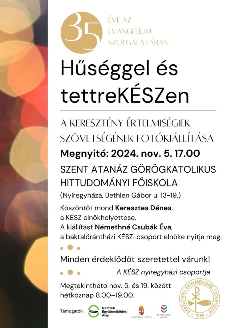 Hűséggel és tettreKÉSZen - 35 év az evangélium szolgálatában című jubileumi fotókiállítás nyílik 2024. november 5-én, kedden 17 órakor a Szent Atanáz Görögkatolikus Hittudományi Főiskolán.