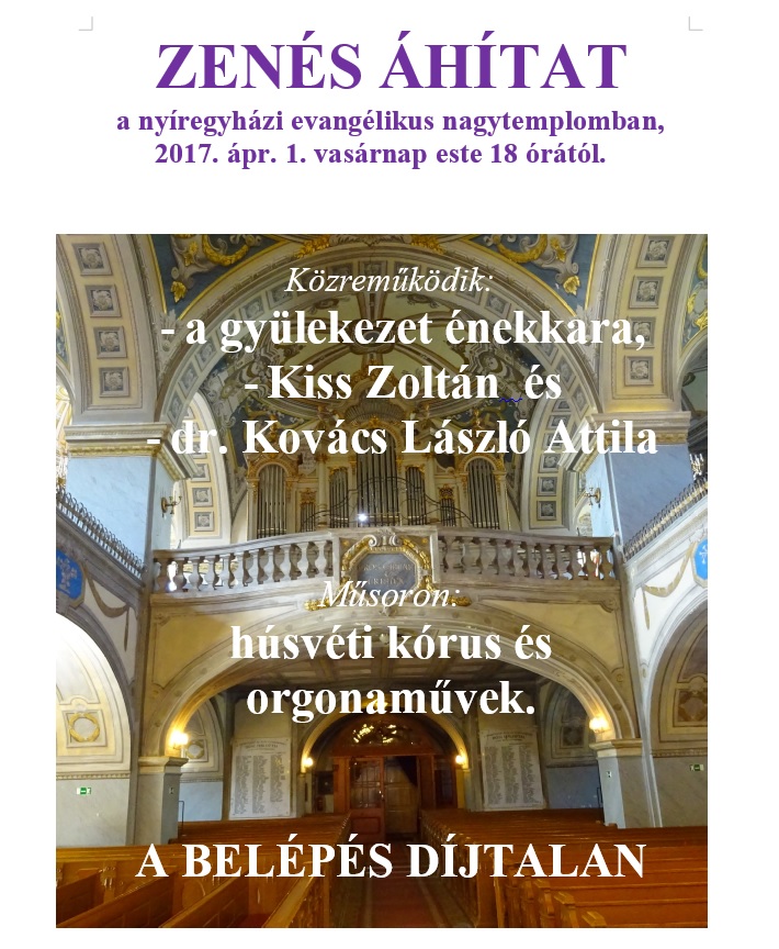Közreműködik a gyülekezet énekkara, dr. Kovács László Attila és Kiss Zoltán orgonán.