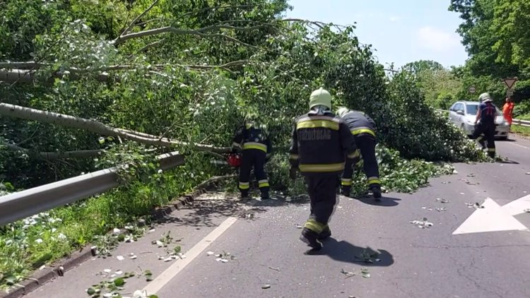 A fa rádőlt a Kemecsei útra, félpályás útzárat képezett. A helyi hivatásos tűzoltók motoros láncfűrésszel, kéziszerszámokkal avatkoztak be.