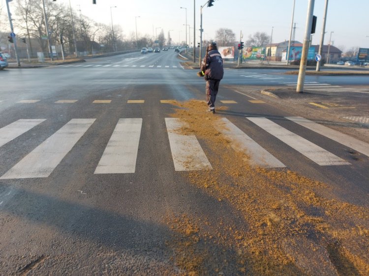 Ideiglenesen lezárták a Debreceni út egy szakaszát, nagy mennyiségű olaj folyt a területre