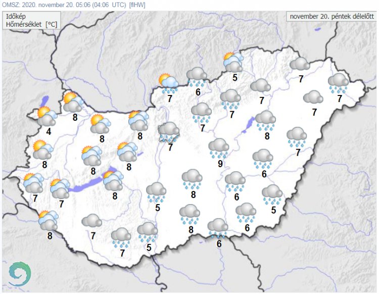 Napközben északnyugat, észak felől általában gyorsan csökken a felhőzet, és megszűnik a csapadék, de a délkeleti tájakon, valamint helyenként a középső országrészben is estig még sok maradhat a felhő, ezeken a tájakon délután néhol eső, zápor előfordulhat – írja az Országos Meteorológiai Szolgálat honlapján. (A hegyekben havaseső-zápor, esetleg hózápor is lehet.) Az északi szél többfelé megerősödik. A legmagasabb nappali hőmérséklet 5 és 10 fok között valószínű. Késő estére -3 és +5 fok közé hűl le a levegő.