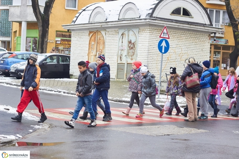 Biztonságban kelhetnek át az úton az Epreskert és a Nyár utca kereszteződésénél az új, pirosra festett zebrán a Bem József Általános Iskola tanulói.