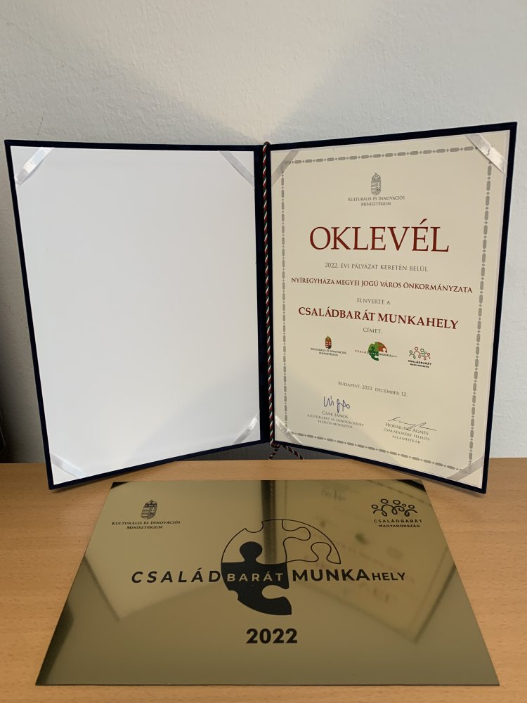 Az Önkormányzat évek óta kiemelt figyelmet fordít a munka és a magánélet összehangolását segítő programok megvalósítására, amely eredményeként immár hetedik alkalommal, idén is Családbarát Munkahely Díjat nyert Nyíregyháza MJV Önkormányzata.