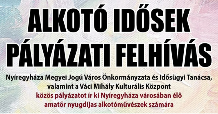 Nyíregyháza Megyei Jogú Város Önkormányzata, Nyíregyháza MJV Idősügyi Tanácsa és a Váci Mihály Kulturális Központ közös pályázatot ír ki Nyíregyháza városában élő, amatőr nyugdíjas alkotóművészek számára.