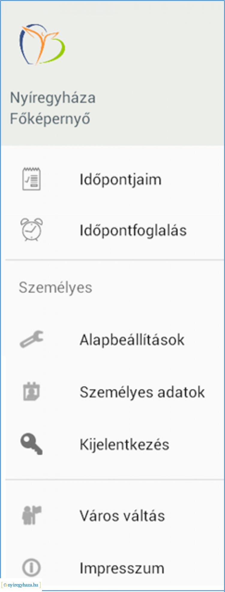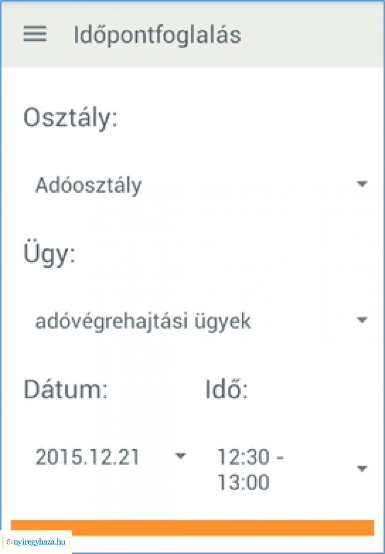 A www.nyiregyhaza.hu honlapon található e-időpontfoglalás menüpontra kattintva megnyílik az időpontfoglaló alkalmazás, ahol – válogatva az ügycsoportokban – előre lehet lefoglalni időpontokat. Az időpont foglalásáról a rendszer visszaigazoló e-mailt küld.