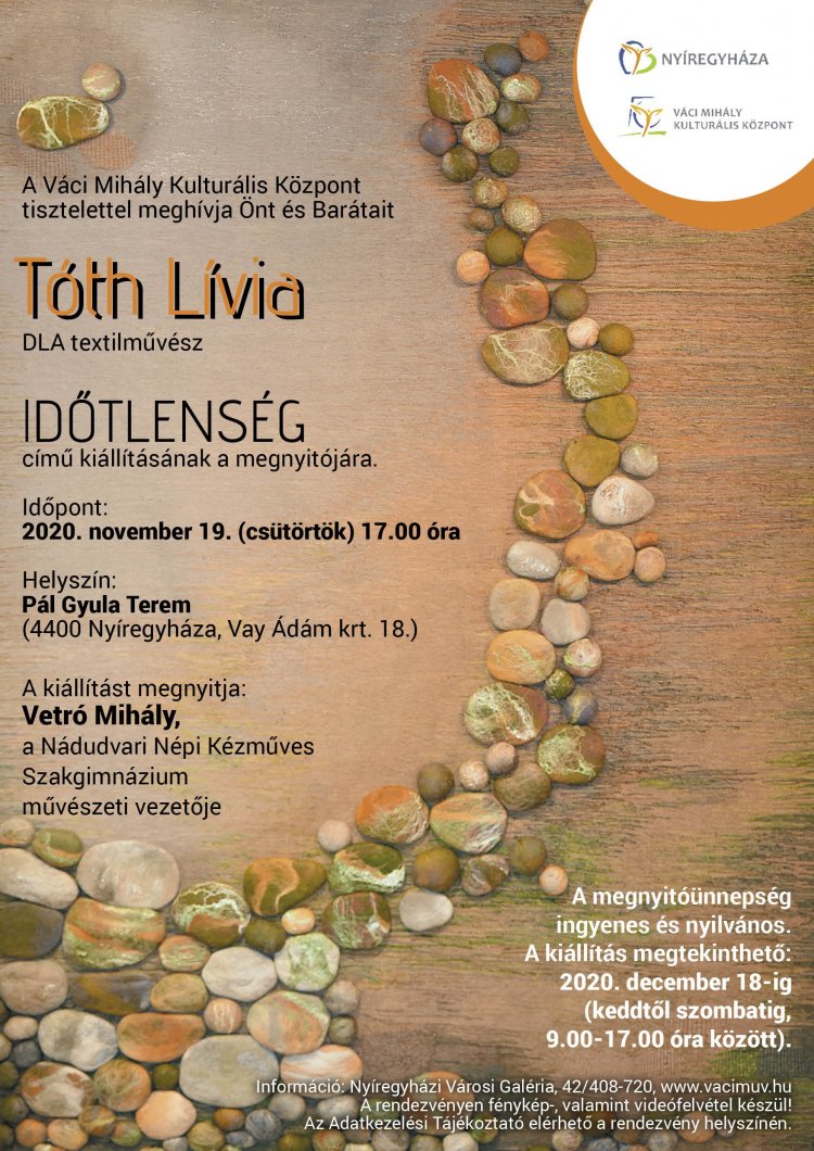 Tóth Lívia DLA textilművész munkáiból nyílik kiállítás november 19-én a Pál Gyula Teremben. Az Időtlenség című tárlat egy hónapon keresztül fogadja a látogatókat.