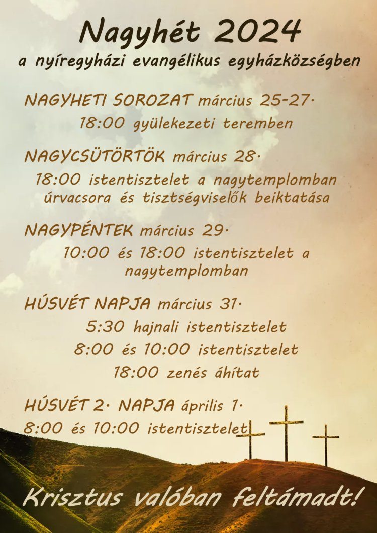 Nagyhét 2024. a nyíregyházi evangélikus egyházközségben
