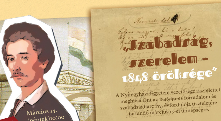 A Nyíregyházi Egyetem vezetősége tisztelettel meghívja az érdeklődőket az 1848/49-es forradalom és szabadságharc 177. évfordulója tiszteletére tartandó március 15-i ünnepségre.