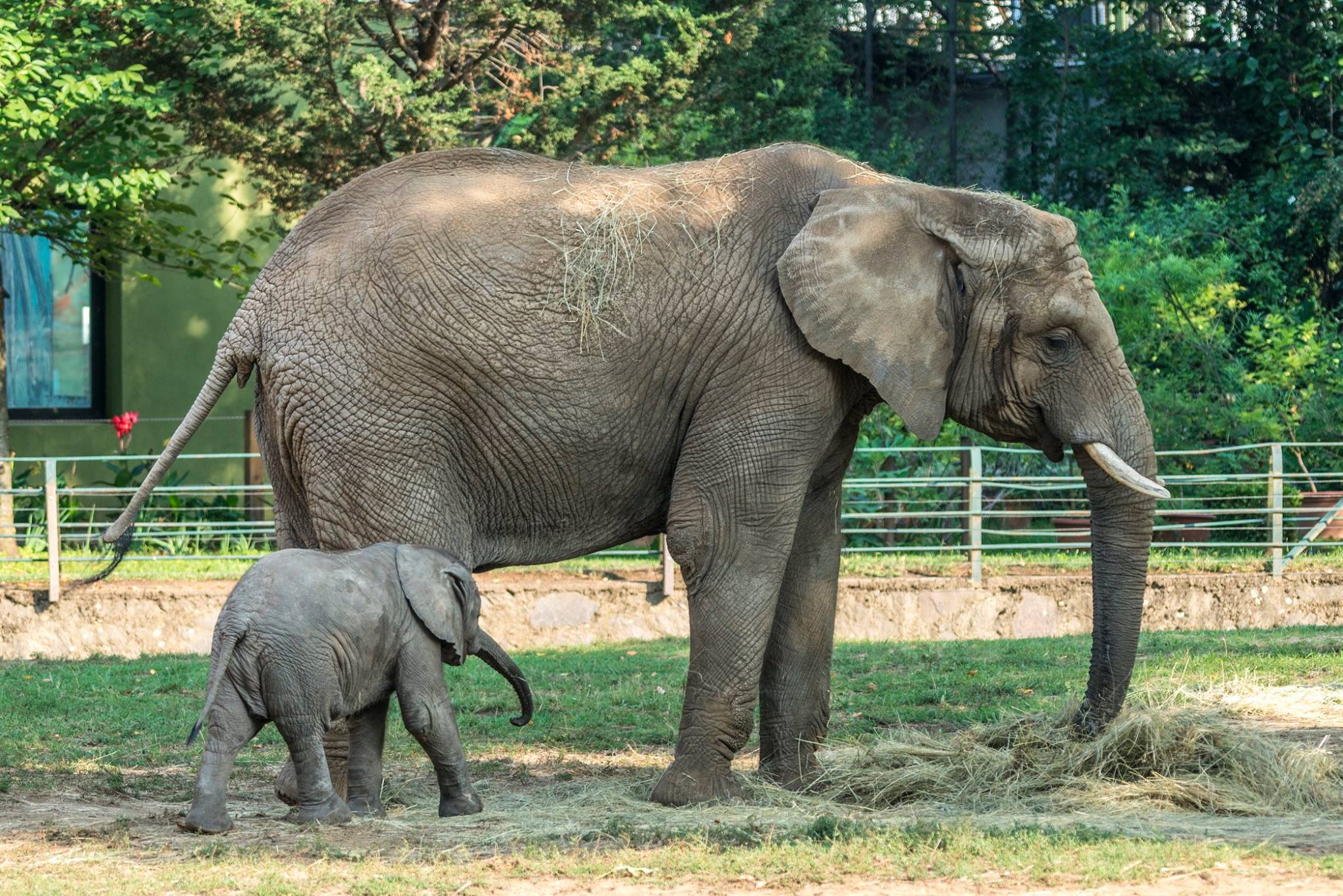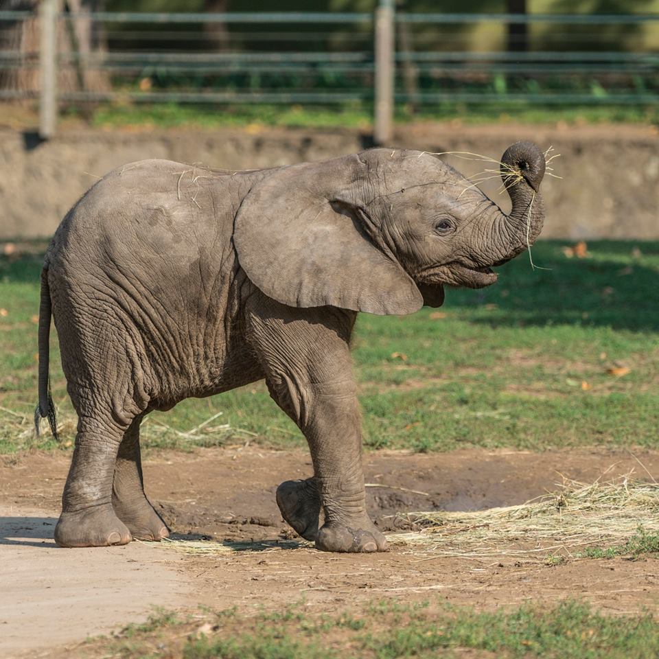 Napjaim nagyobb részét játékkal töltöm, felfedezem a kifutót és nassolok! Fűvel, falombbal, gyümölccsel és kisebb ágakkal táplálkozom, ha pedig felnövök, egy nap alatt akár háromszáz liter vizet is megiszok és szintén közel háromszáz kilogramm táplálékot is elfogyasztok majd.