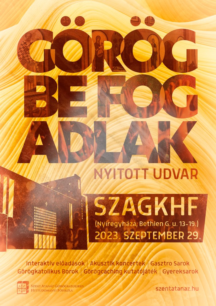 Ebben az évben egy nyitott udvar programmal is készülnek, amely a „Görögbe fogadlak” címet kapta. A főiskola és a múzeum közös udvarát kinyitják az érdeklődők számára, akik a tudományos előadások mellett akusztikus koncerteket is hallgathatnak. A rendezvényen egyházmegyei sátrak és görögkatolikus Gasztrosarok is várja az érdeklődőket, valamint a családokkal hozzánk ellátogató gyerekeket is igyekszünk színes gyermekprogramokkal elkápráztatni.