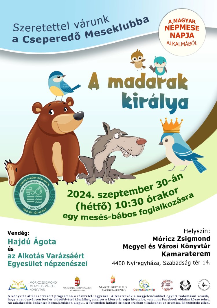 A Móricz Zsigmond Megyei és Városi Könyvtár a Népmese napja alkalmából 2024. szeptember 30-án (hétfőn) a következő programokat szervezi: