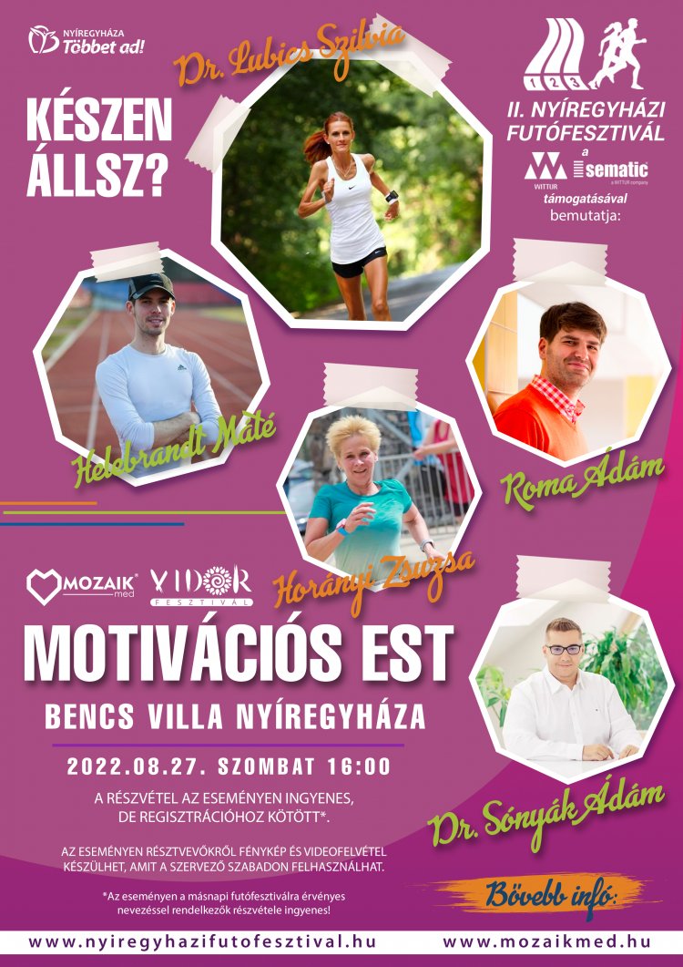 A Mozaik Med SE és Nyíregyháza MJV immár másodszor rendezi meg a Nyíregyházi Futófesztivált, Nyíregyháza zöld futóversenyét a város legszebb részein, idén a VIDOR programsorozat részeként.