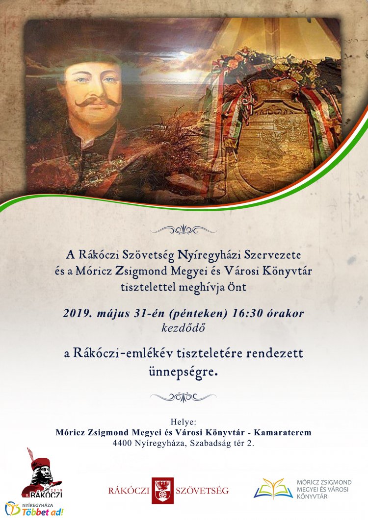 A magyar Országgyűlés a 2019-es évet II. Rákóczi Ferenc emlékévnek nyilvánította. Ebből az alkalomból május 31-én ünnepséget tartanak a Móricz Zsigmond Megyei és Városi Könyvtárban.