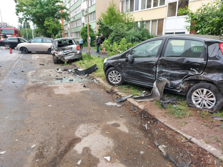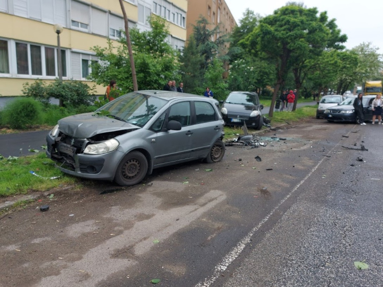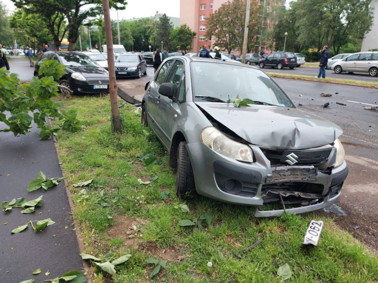 Több parkoló autót összetört és egy fát is kitört egy személygépjármű hétfő délután a Ferenc körúton.