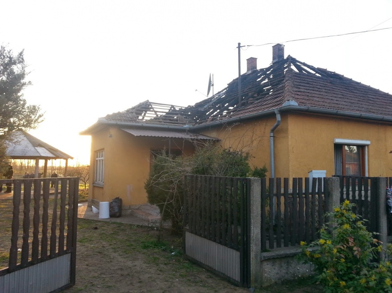 Már az utcáról is látszik micsoda pusztítást okozott a tűz. A 10x10 négyzetméteres épület tetőszerkezetén alig van cserép, alatta üszkös, megégett gerendák és szarufák láthatóak. Az udvarról még lehangolóbb a kép; a vályogházat kibővítették egy tégla épületrésszel, ennek most se ablaka, se mennyezete, minden a lángok martaléka lett. Valószínűleg itt gyulladhatott meg valami. A szakértők egyelőre nem tudták megmondani, micsoda. Dóka Imre, a katasztrófavédelem szóvivője azt mondta, hogy vizsgálják az esetet. A házban összesen 11 élnek. 2 felnőtt és 9 gyerek. A tűzeset idején nem volt mindenki otthon. Egy felnőtt nő és négy gyerek azonban így is füstmérgezést szenvedett. Őket a mentők kórházba szállították. A szerencsétlenül járt családnak az önkormányzat azonnal segítséget ajánlott. Egy szociális bérlakást kínáltak fel számukra. A család azonban nem élt a lehetőséggel. Úgy döntöttek, egyelőre a rokonoknál húzzák meg magukat. Úgy tudjuk, a Jósa András Kórházba került nő és a négy gyerek jobban van, de egyelőre megfigyelés alatt tartják őket.
