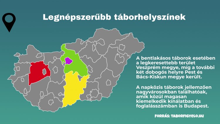 A napközis táborok jellemzően nagyvárosokban találhatóak, amik közül magasan kiemelkedik kínálatban és foglalásszámban is Budapest.