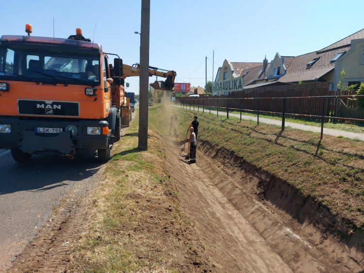 A vízelvezető árkokat tisztítják a Tiszavasvári úton.