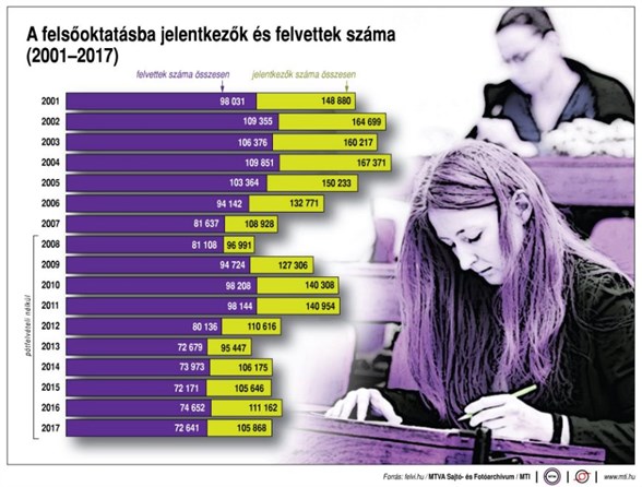 Infografika: így változott a felvételizők és az elsőévesek száma