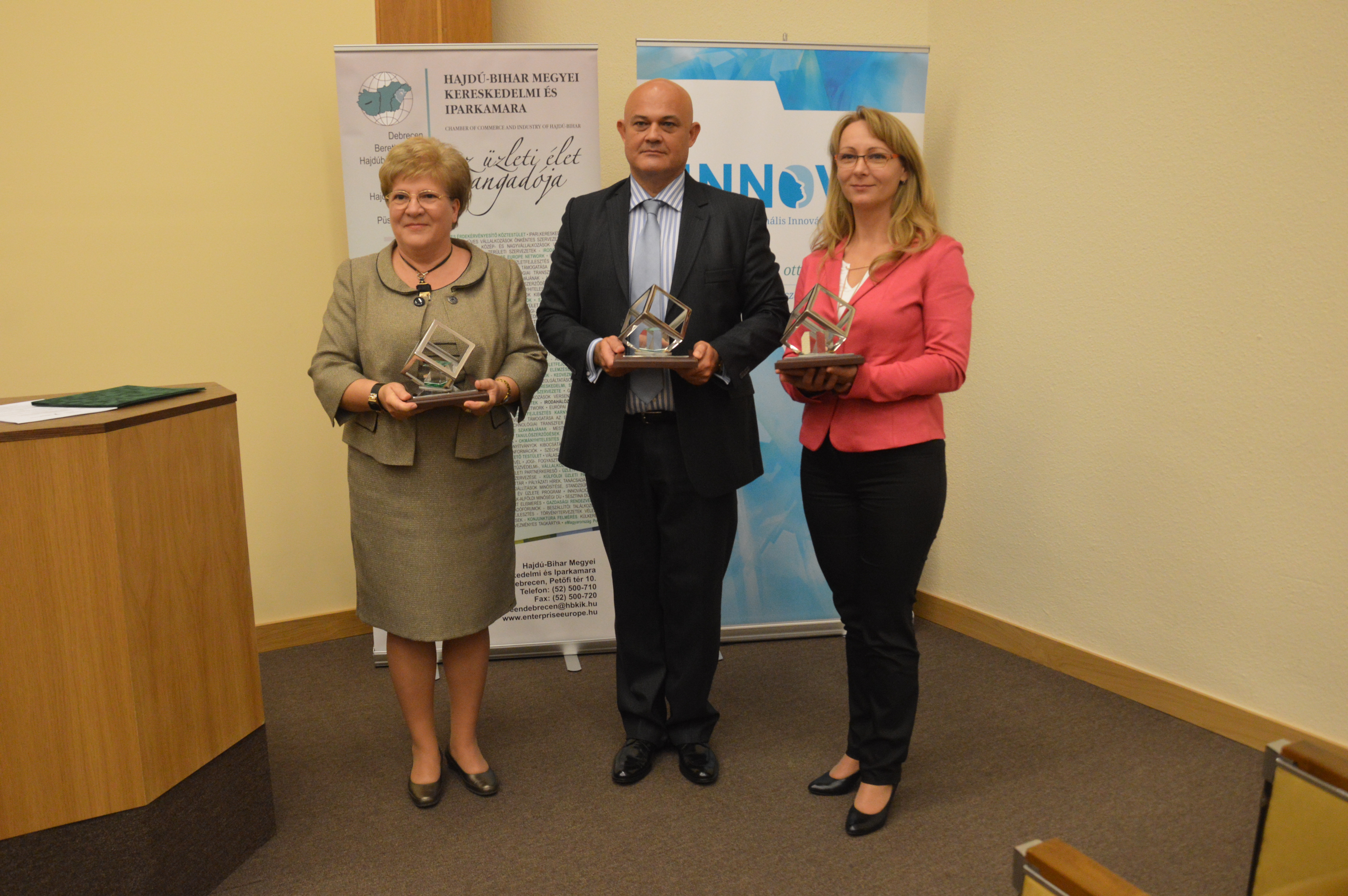A díjazottak a régió három kereskedelmi és iparkamarájának vezetőitől, az INNOVA Észak-Alföld Regionális Ügynökség igazgatójától, valamint az MTA DAB vezetőségétől vehették át az elismeréseket.