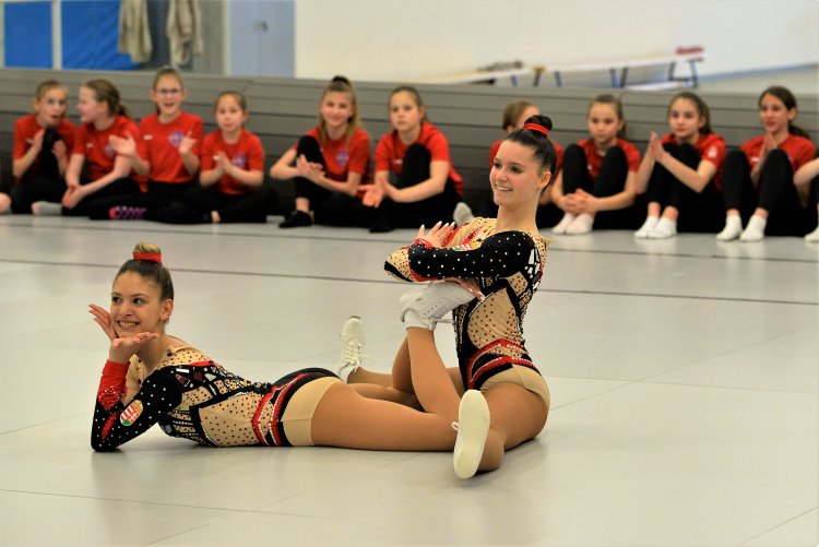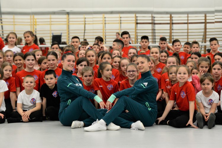 Teljesen megtelt a Spartacus Torna Club edzőterme. Rendszeresen így van ez, hiszen több mint kétszáz gyerek jár edzésekre, a hétfői nap mégis különleges volt. A klub fontos mérföldkőhöz érkezett, két versenyzője a debreceni Flex HD-vel közös egységben UP2 Aerodance kategóriában bekerült a magyar válogatottba, és utazhatnak a portugáliai világbajnokságra. Ők az első válogatott sportolói az STC-nek. Vámosi Kiara és Révész Valentina most vehette át Révész Viktória klubvezetőtől a nemzeti csapat melegítőjét, és címeres dresszben be is mutatták gyakorlatuk egy részét.