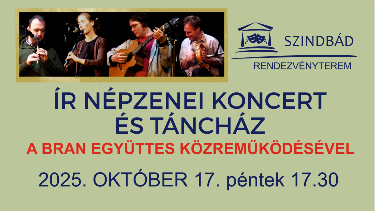 Ír népzenei koncerttel és táncházzal várja a közönséget a Bran együttes október 17-én, pénteken 17.30-tól a Szindbád Rendezvényteremben.
