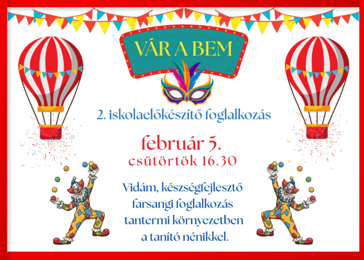 A február 5-i alkalom farsangi hangulatban telik: vidám, készségfejlesztő foglalkozással várják a gyerekeket tantermi környezetben. A Bem József Általános Iskolában a 2026-os beiratkozás időpontja április 23–24. A rendezvények helyszíne az intézmény nyíregyházi épülete. További információ kérhető az iskolában személyesen, telefonon vagy az intézmény hivatalos elérhetőségein.