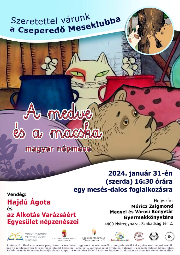 Vár minden érdeklődőt a Cseperedő Meseklub egy mesés-dalos foglalkozásra a Móricz Zsigmond Megyei és Városi Könyvtárba!