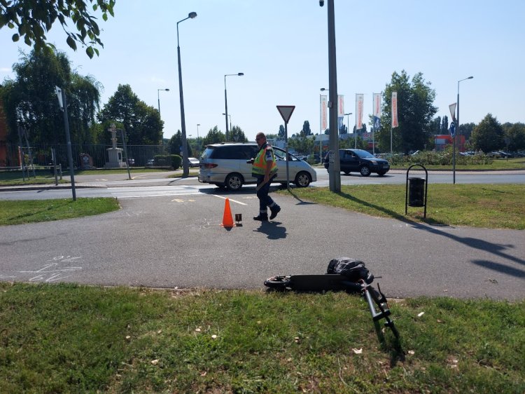 Összeütközött egy rolleres és egy kerékpáros a Korányi Frigyes utcán, a görögkatolikus templomnál kedd délelőtt.